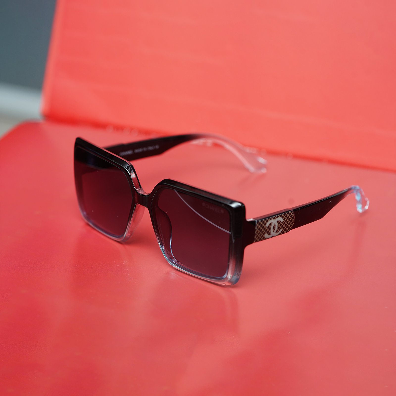 Make a bold statement with these Chanel-inspired oversized square sunglasses. Designed for fashion-forward individuals, they feature a glossy black frame, gradient lenses, and signature luxury detailing on the arms. Whether you’re walking city streets or attending a summer event, these shades are your ultimate glam companion.